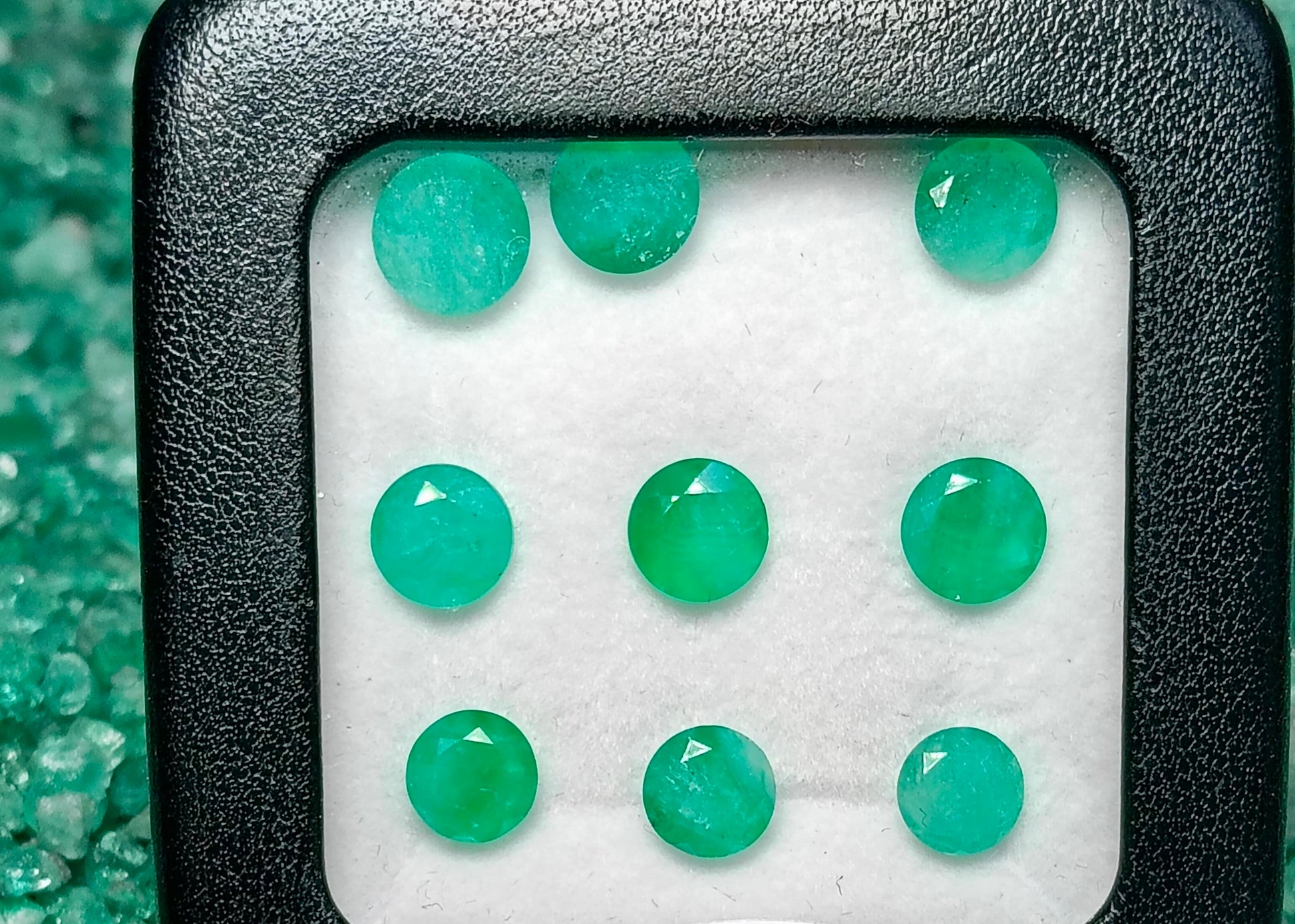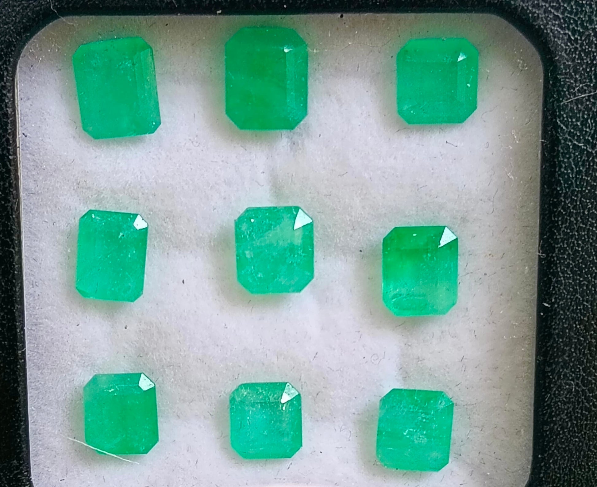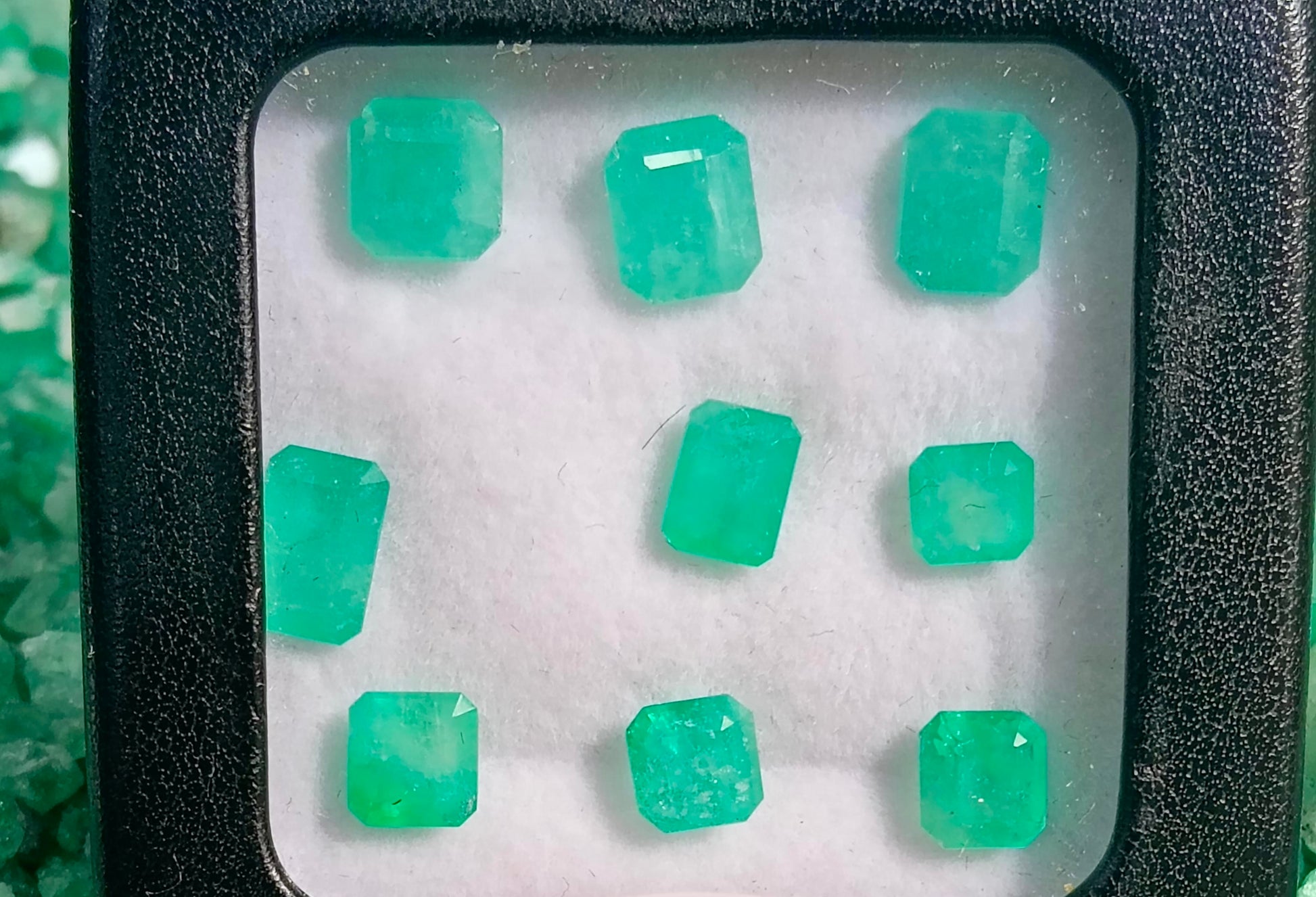 Este exclusivo lote de esmeraldas naturales colombianas, cuidadosamente seleccionadas, con corte diferentes cortes. Su vibrante tono verde y su brillo único reflejan la autenticidad y calidad que solo las gemas de Colombia pueden ofrecer.