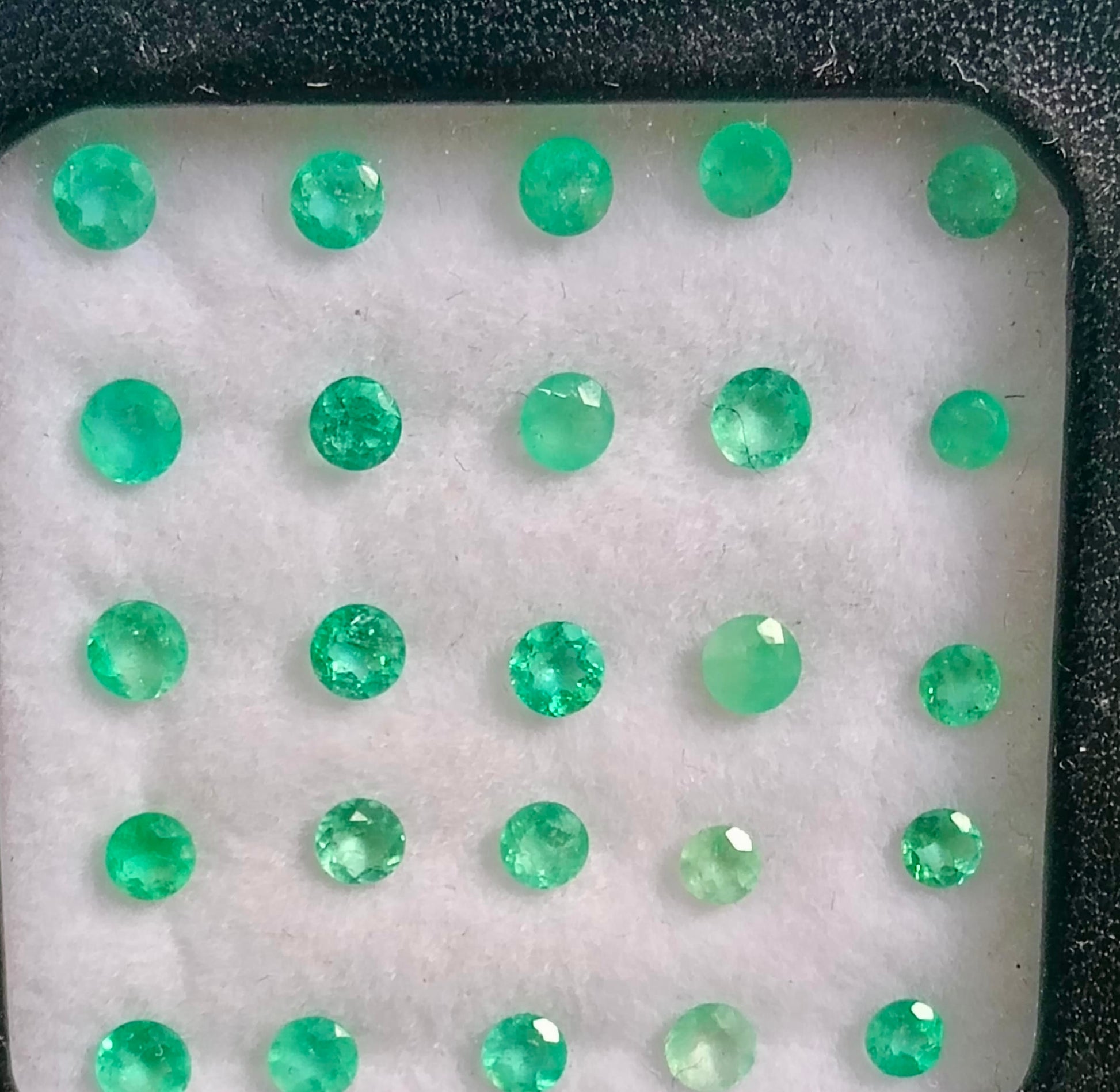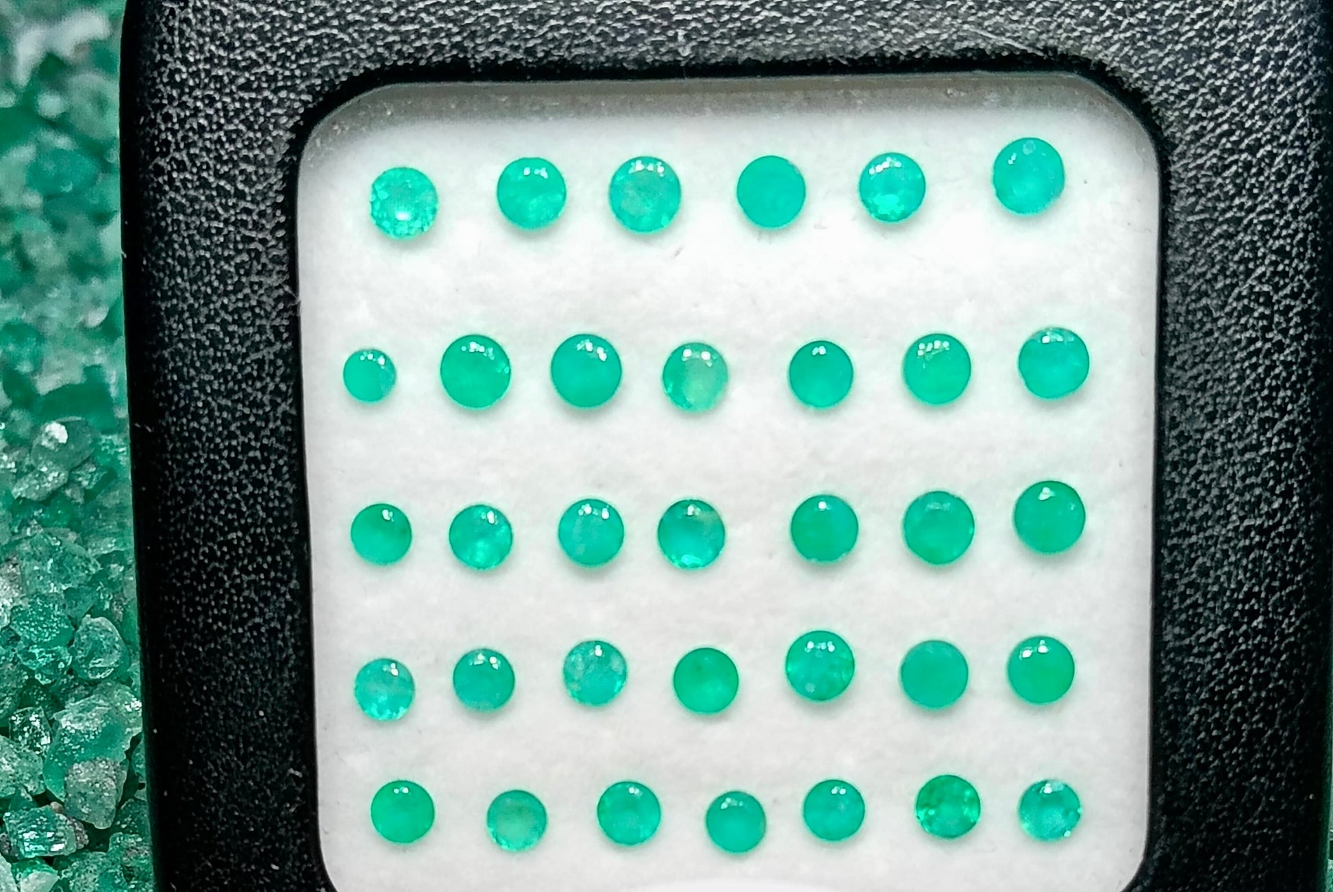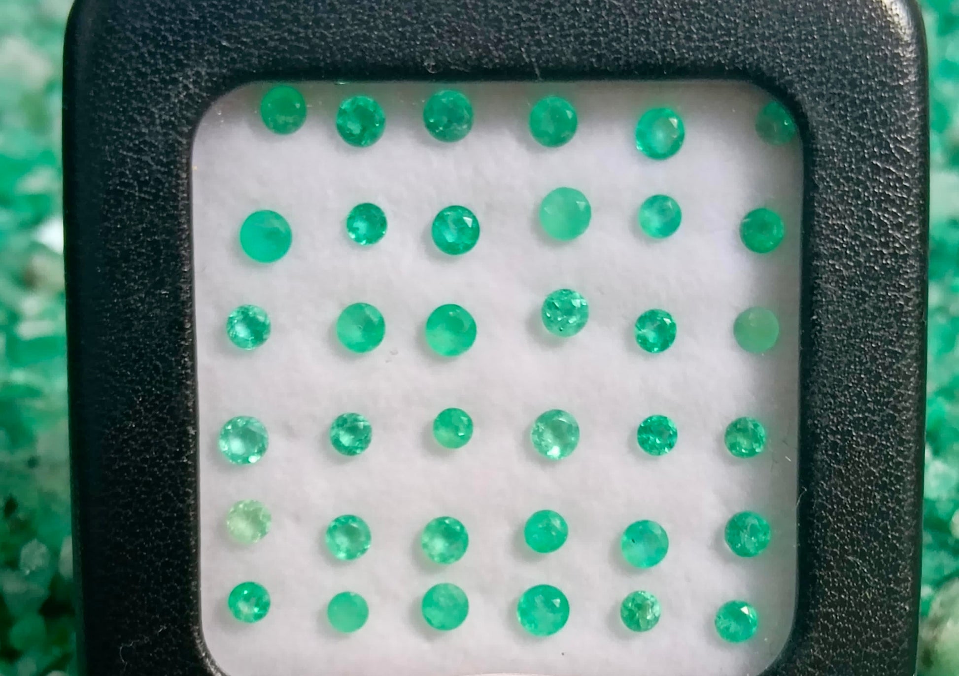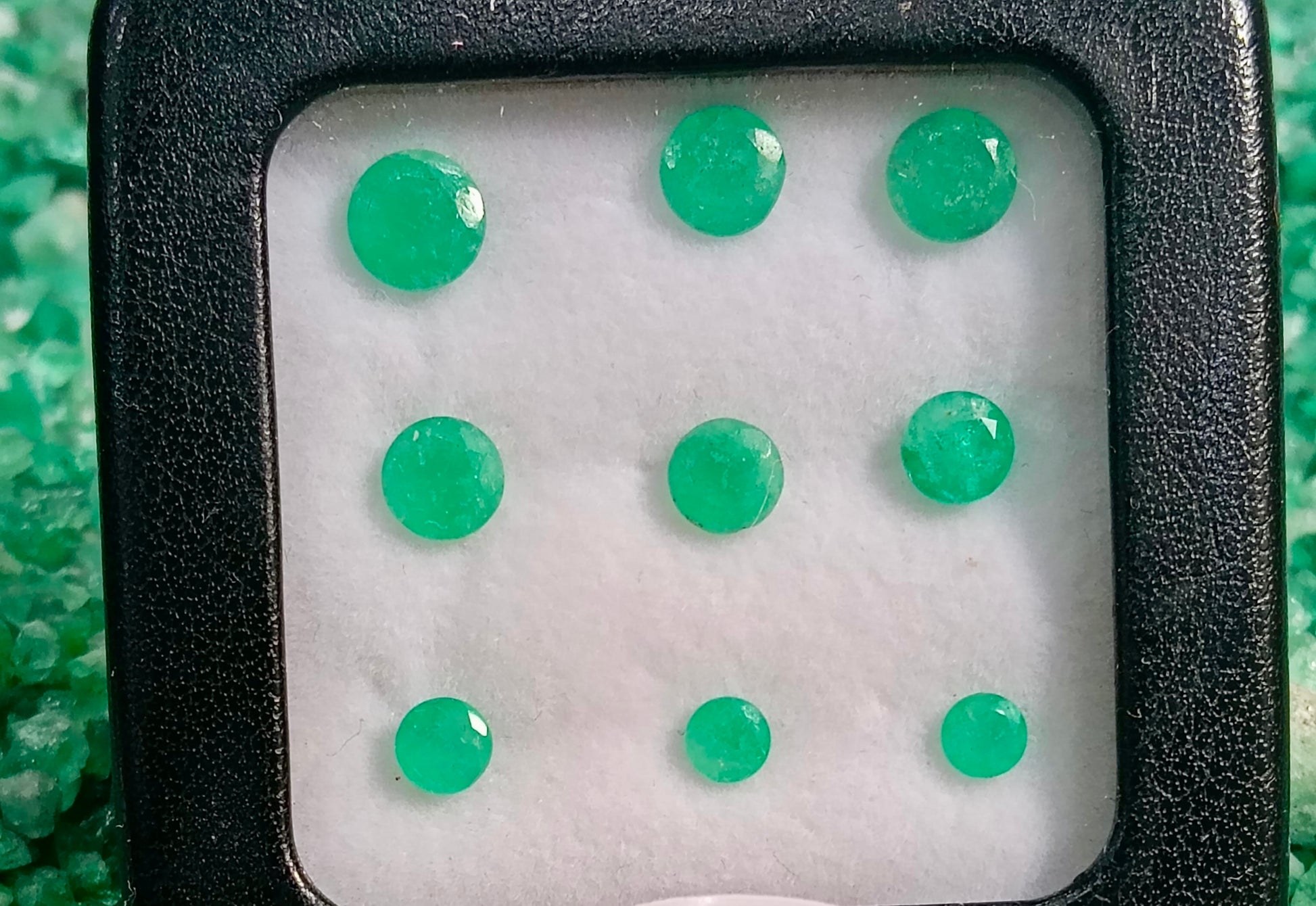 Este exclusivo lote de esmeraldas naturales colombianas, cuidadosamente seleccionadas, con corte diferentes cortes. Su vibrante tono verde y su brillo único reflejan la autenticidad y calidad que solo las gemas de Colombia pueden ofrecer.